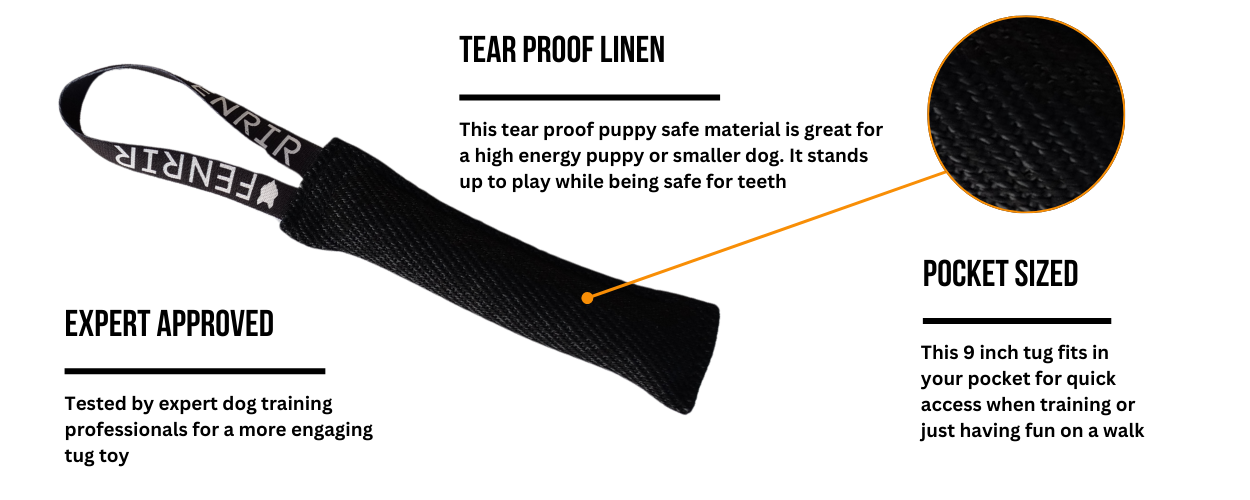 Dive into the fun and lively world of tug with our Fenrir 9 inch French Linen Tug Training Tool, a standout pick among tug toys for smaller dogs and puppies.